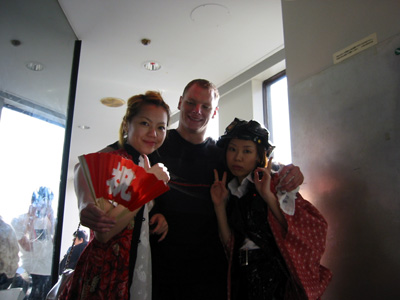 Taros, Midori & Takahiro draußen auf dem Gang.
