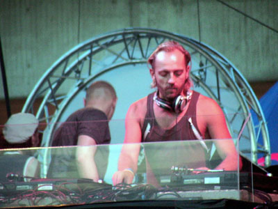 Sven Väth kam krankheitsbedingt erst gegen 17h an die Turntables, so lange musste bzw. durfte Andre Galluzzi ihn vertreten (was ihm sichtlich Freude machte). Der Anfang von Sven Väth's Set war ganz ok war aber nicht 100% nach meinen Geschmack. Den Mittelteil fand ich dann ein wenig zu experimentell und teilweise schwer tanzbar. Das war ein guter Zeitpunkt mal wieder auf den anderen Floors vorbeizuschauen :-). Das letzte Drittel seines Sets traf dann wieder voll meinen Nerv und war mit das beste, was ich von Sven seit längere Zeit gehört habe: Es gab viele Stücke mit flächigen Sequenzen im Techno-Stil der frühen Neunziger, die Tracks waren weniger hart sondern etwas melodiöser und gingen teilweise in Richtung Acid. Das Finale rockte dann mit Klassikern wie „Radio Gaga“ und „Night of the Jaguar“ noch mal richtig und am Ende forderte das Publikum vereint lautstark eine Zugabe. Diese gab es aufgrund strenger behördlicher Auflagen leider nicht mehr. Schade, denn auch Sven Väth schien zu diesem Zeitpunkt grad richtig warmgelaufen zu sein.